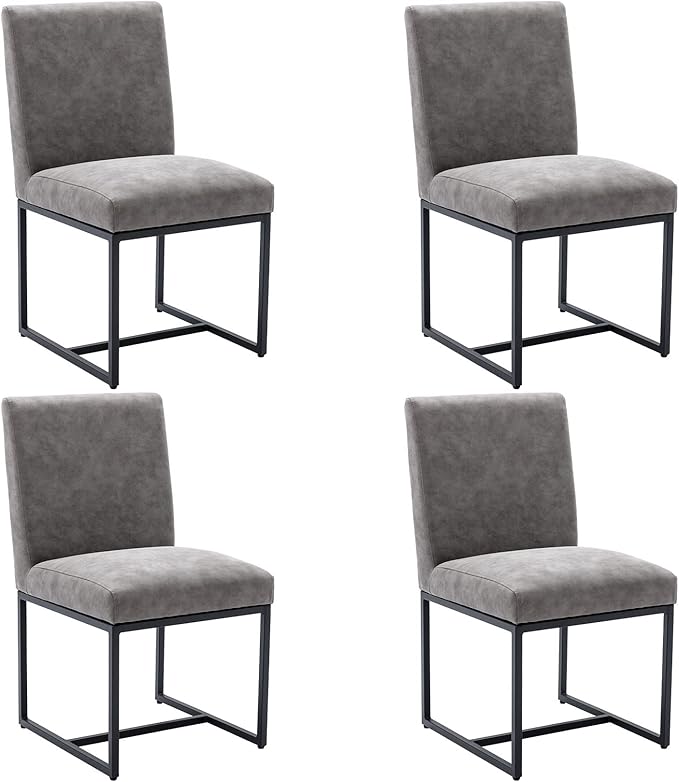 VESCASA Faux Leather Upholstered Dining Chairs with Black Metal Frame, Mid Century Modern Padded Kitchen Chair with Adjustable Foot Pads for Restaurant, Dining Room, Set of 4, Light Grey
