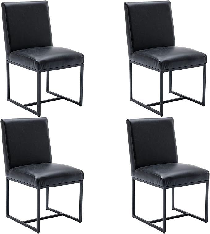 VESCASA Faux Leather Upholstered Dining Chairs with Black Metal Frame, Mid Century Modern Padded Kitchen Chair with Adjustable Foot Pads for Restaurant, Dining Room, Set of 4, Black