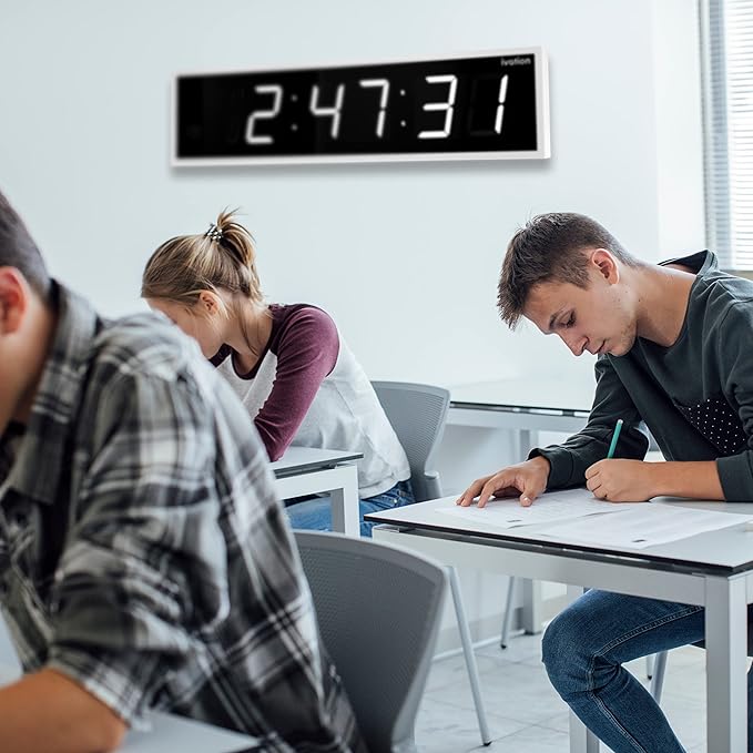 - DESIGNED FOR SHELF OR WALL DISPLAY – Built-in mounting holes and complete hardware kit ensure stress-free installation in your home, office, warehouse, gym, school, or any space. Ideal for children, adults, and seniors. Plus, built-in battery retention preserves your time & date during power loss ensuring uninterrupted accuracy without the hassle of reprogramming.