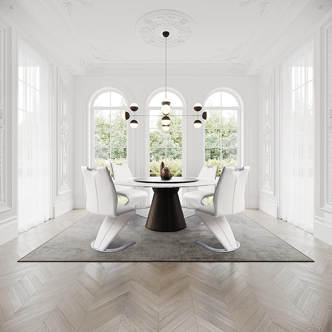 - Stylish: Mermaid-shaped dining chairs with a contemporary touch, featuring a contoured seat and back upholstered in soft, durable PU leather.