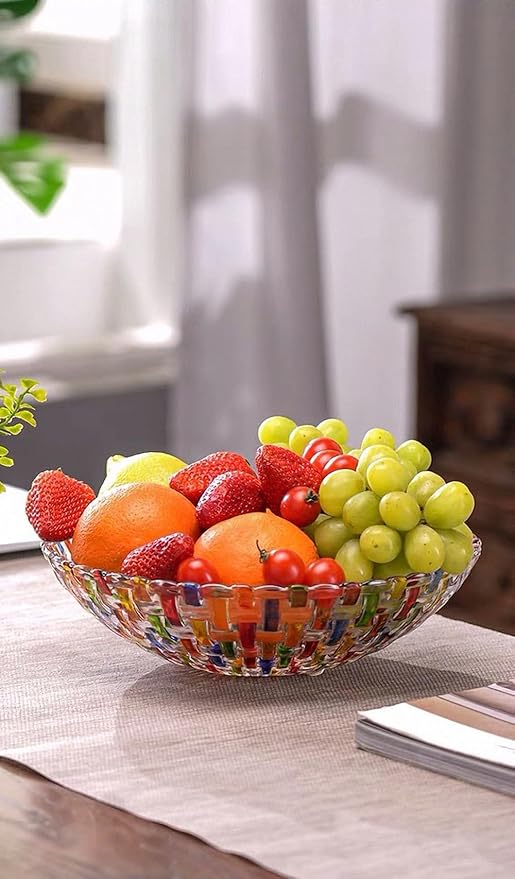 Hand Painted Colorful Woven Glass Crystal Salad & Fruit Bowl Decoration,Centerpiece For Home,Office,Wedding Decor, Fruit, Snack, Dessert, Server