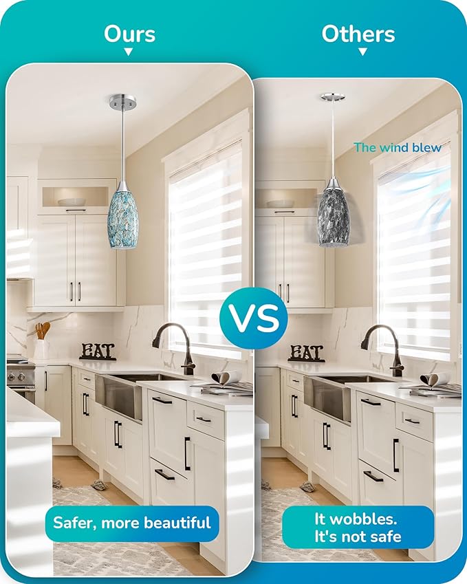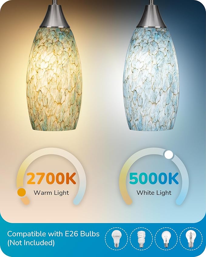 - 【Wide Application】This handcrafted glass pendant light with simple and modern design is perfect to blend in with any decor style, ideal for kitchen island, bar, kitchen sink, bathroom and dining roon; ETL listed