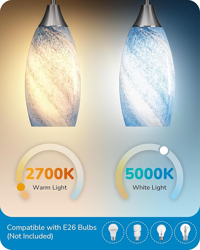 - 【Wide Application】This handcrafted glass pendant light with simple and modern design is perfect to blend in with any decor style, ideal for kitchen island, bar, kitchen sink, bathroom and dining roon; ETL listed
