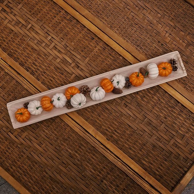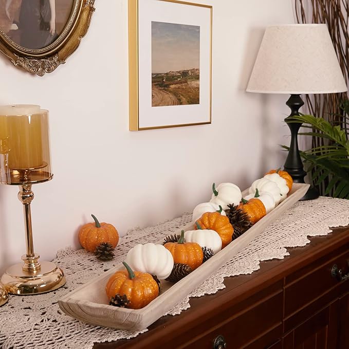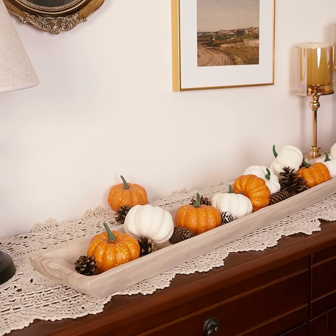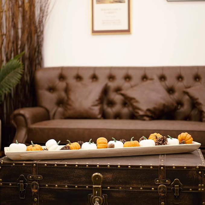 - ✔️【Natural Long Wood Dough Bowl 】These decorative wood dough bowls go in almost any style home. Our dough bowl is one-of-a-kind with a distressed rustic and coarse texture and an elegant but lightweight appeal. Dough bowls in wood long enough for your dining table; Large dough bowls available in various lengths to hold nice amount of objects for any season - Christmas, fall, Thanksgiving