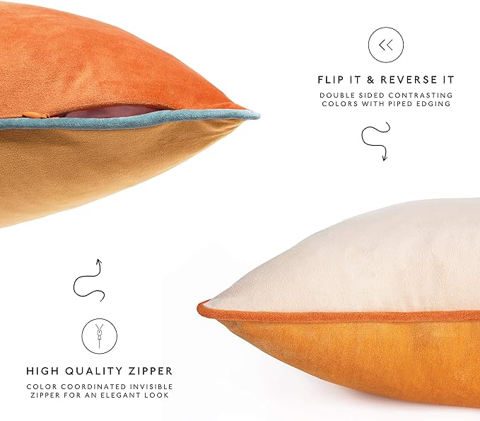 MONDAY MOOSE Decorative Throw Pillow Covers Cushion Cases, Set of 4 Soft Velvet Modern Double-Sided Designs, Mix and Match for Home Decor, Pillow Inserts Not Included (16x16 inch, Orange/Teal)