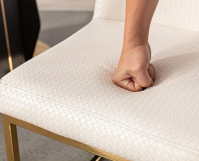 - MODERN DESIGN Modern mid-century dining chairs feature padded seat cushions, beige woven detail PU leather covering, and a gold metal frame. Simple but elegant, they are a great addition to your dining room