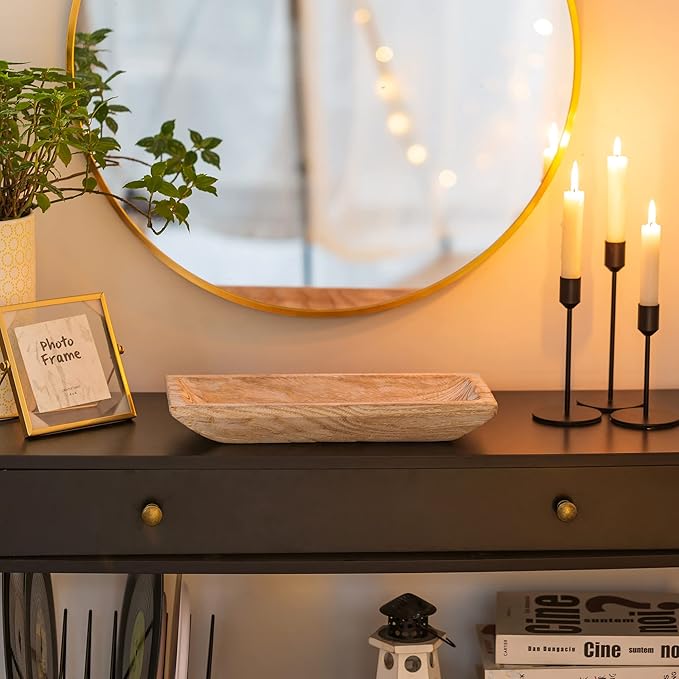 - Size: 14x6.14x1.96",Handmade with care, our decorative wooden bowls may have minor size variations of +/- 0.5 inch. These shallow bowls are crafted exclusively for decoration, not for food use, but they serve as charming table centerpieces, perfect for candleholders.