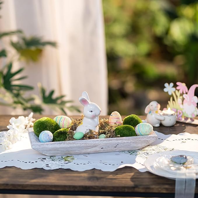Hanobe Decorative Wood Dough Bowl: Long Wooden Bowl for Entry Way Table Home Decor - Coffee Table Decor for Living Room - Dining Table Centerpiece Decor, White