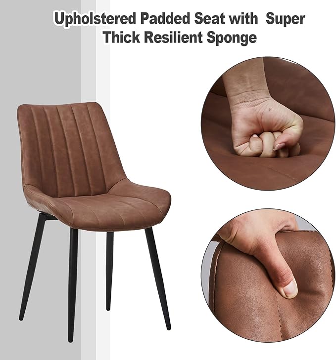 TUKAILAi Faux Leather Dining Chairs Set of 4, Modern Linear Design Kitchen Chairs with Upholstered Seat and Metal Legs, Comfortable Side Chairs for Dining Room Restaurant Commercial (Brown)
