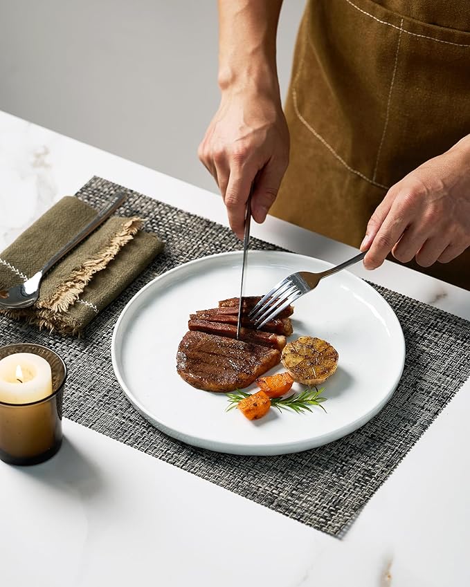 - 【Scratch Resistant】Dinnerware is fired at 2340℉ for 13.5 hours to form a strong scratch resistant surface. No need to worry about scratches from your forks or knives.