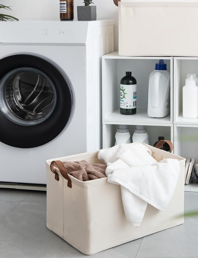 - Handle with Ease: With the 2 PU handles securely riveted to the sides of the storage bin, you can easily carry items without tearing the handles.