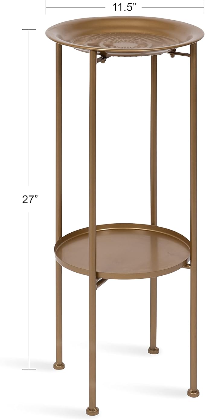 Kate and Laurel Mahdavi Modern Plant Stand Table; 12 x 12 x 27; Gold; Unique Accent Table with Textured Top