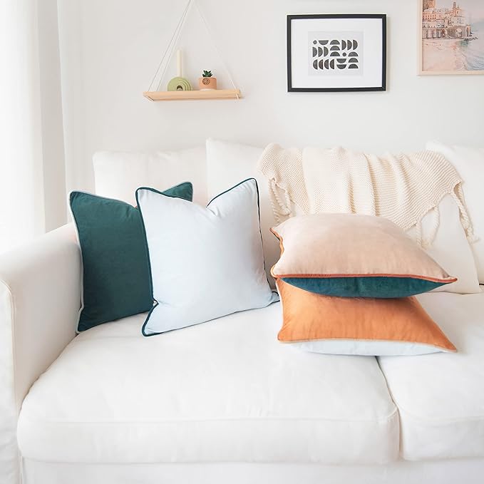 - SET OF 4: Includes 1 beige velvet pillow + 1 green velvet pillow + 1 orange velvet pillow + 1 light blue velvet pillow