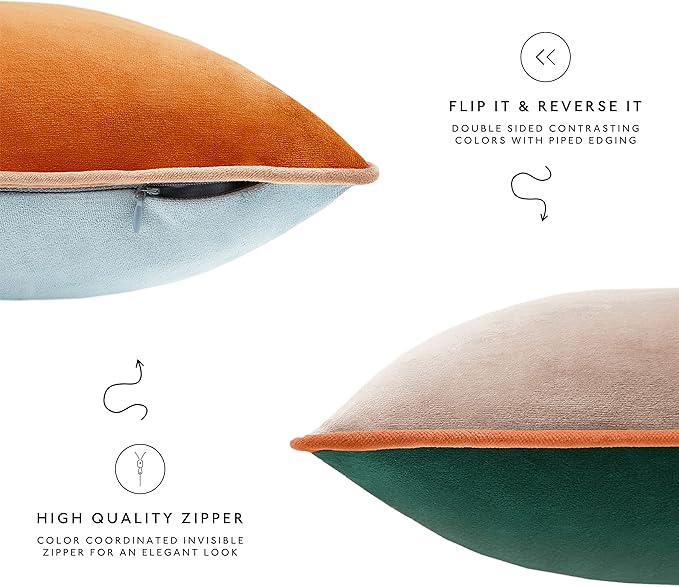 MONDAY MOOSE Decorative Throw Pillow Covers Cushion Cases, Set of 4 Soft Velvet Modern Double-Sided Designs, Mix and Match for Home Decor, Pillow Inserts Not Included (18x18 inch, Orange/Green)