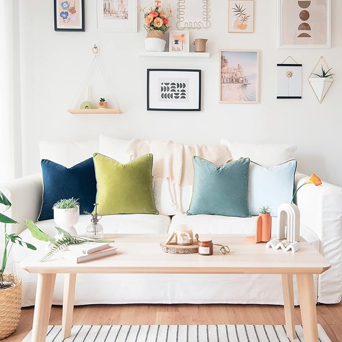 - SET OF 4: Includes 1 olive green velvet pillow + 1 light blue velvet pillow + 1 blue velvet pillow + 1 teal velvet pillow