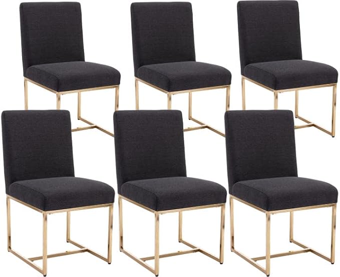 VESCASA Linen Upholstered Dining Chairs Set of 6, Mid Century Modern Padded Chair with Gold Metal Frame for Restaurant, Dining Room, Kitchen, Charcoal