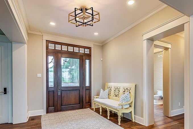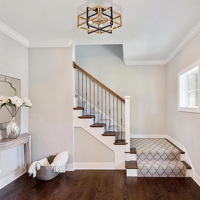 - Widely Indoor Use: This sleek geometric 4-light flush mount light fixture brings brilliant modern industrial style to dining room, living room, bedroom, laundry, kitchen, hallway, foyer, entryway etc