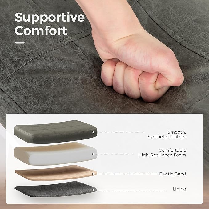 - 【Water Resistant & Comfortable Barstools】 The 3" thick soft padded saddle seat and 4 sides foot rests of the barstools always provides people with more comfortable and relaxing sitting experience. Nicely stitched faux leather seat is water & stain resistant, which makes the bar stools quite easy to clean