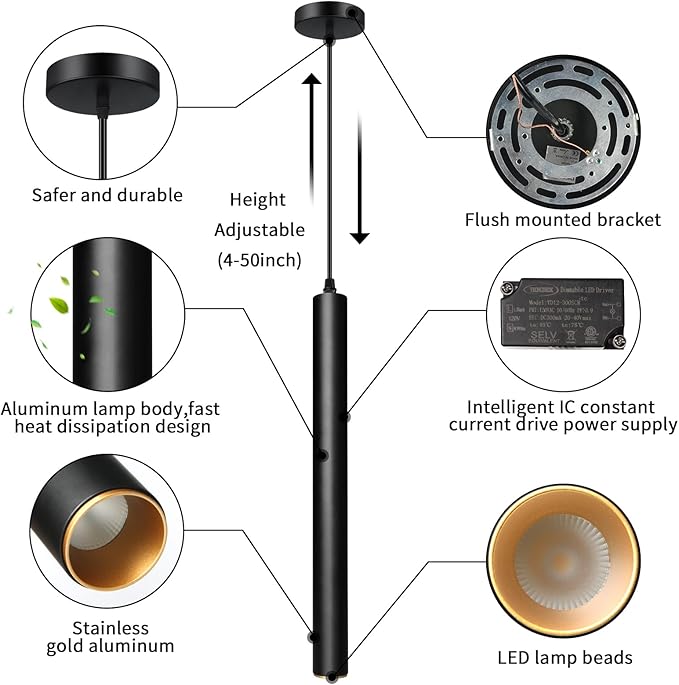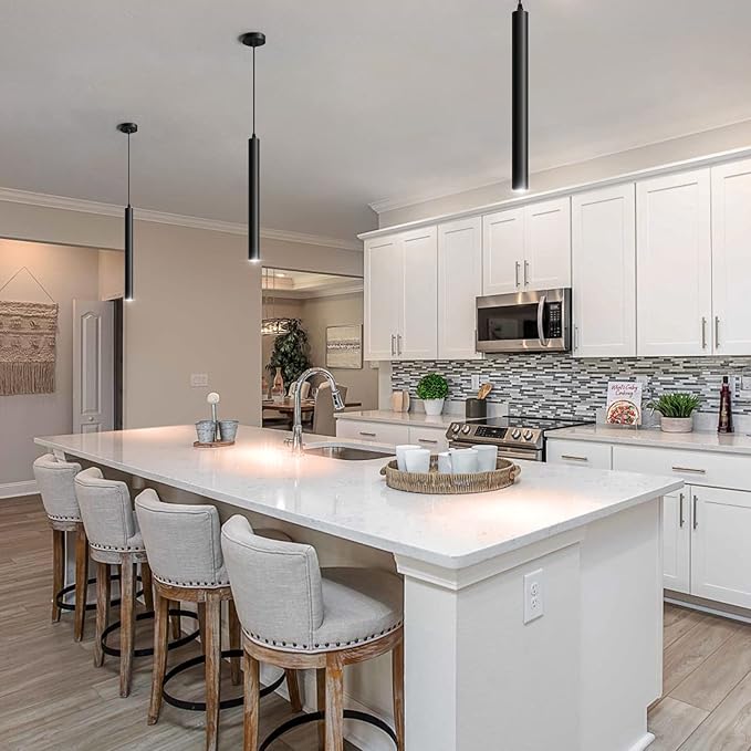 - 【Material & Size】Modern pendant lights kitchen island is made of high-quality, fast-dissipating aluminum body and highly breathable cylindrical acrylic, with a matte texture on the surface. The tube is 15.2 inches long and 1.5 inches in diameter, and the cover is 4.7 inches in diameter.