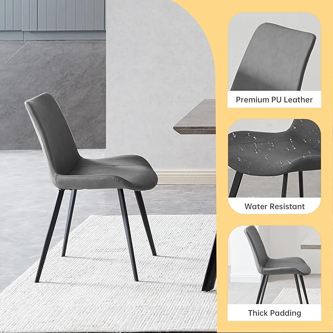 - A 5-piece modern dining table set offers an elegant look, this kitchen dining table set is comfortable and relaxing, the rectangular modern dining table set gives excellent durability,4 modern quality leather chairs and a wonderful wooden dining table that enhances the magic of your dining room with its stunning design. You can have breakfast, lunch or dinner with your friends or family on the striking rectangular dining table set.
