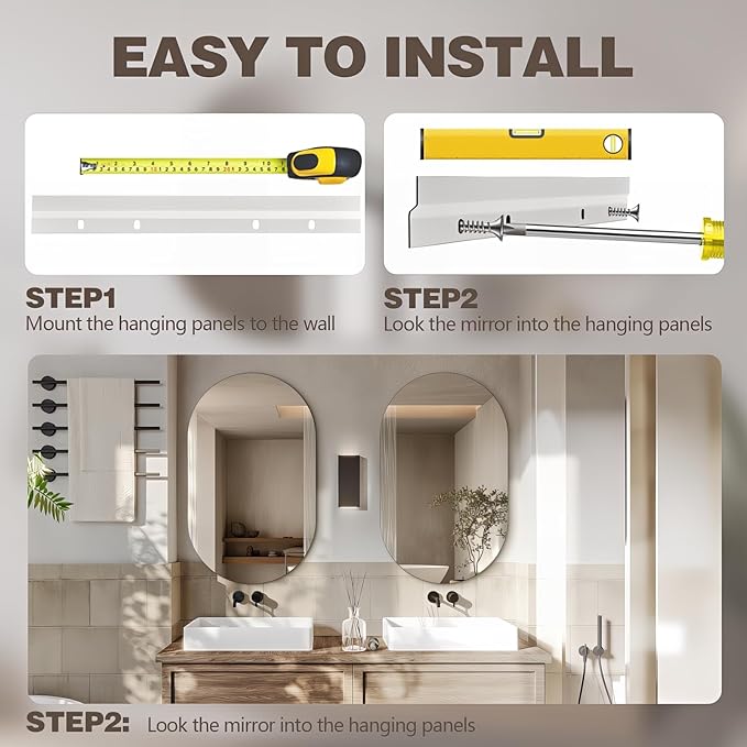 - 【Hanging Horizontally or Vertically】You can freely choose to hang these frameless mirrors horizontally or vertically according to the size of the space. Say goodbye to complicated setups, our frameless oval mirror can be securely and effortlessly installed in just a few minutes. Saving you time and effort and start enjoying your mirror sooner with easy and quick installation.