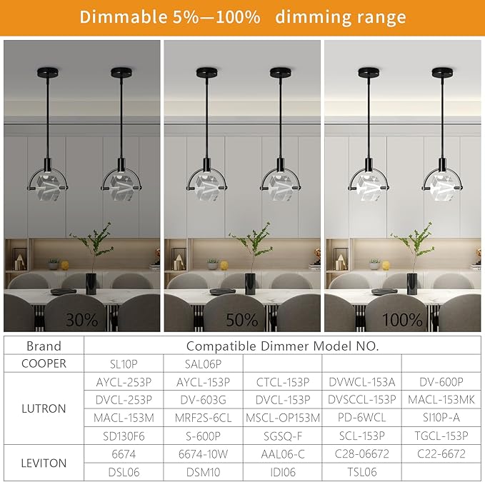 - 【Dimmable】5%-100% dimming range, compatible with most household thyristor LED dimmers for smooth and flicker-free operation.