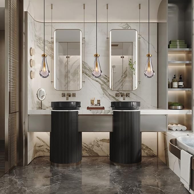 - 【Bigger Size】The kitchen island pendant light’s all-brass base has a diameter of 5"; the raindrop glass measures 5"x11"; Raindrop weighs 8.2 LB. the bigger size of the pendant lighting for kitchen island allows you to get a better light effect.