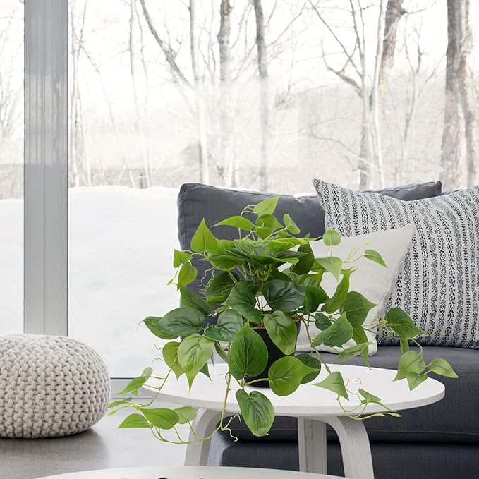 - Natural and Realistic - The leaves texture of faux pothos is clear and full, the “soil” filling is realistic grit dirt/rock look, makes it look as if it is truly growing up out of the pot. Compared with real plants, the faux plants indoor won't give you sniffles.