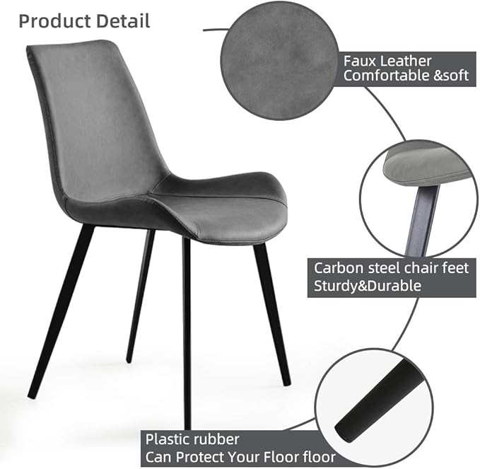 - High-Quality Leather Dining Chairs: The dining chairs are made of high-quality artificial leather and highly elastic foam padding, with metal tubular legs and strong load-bearing capacity, each chair can bear up to 300 pounds. The seat cushion and backrest of the chair are ergonomically designed, soft and thick, providing a comfortable sitting feel.