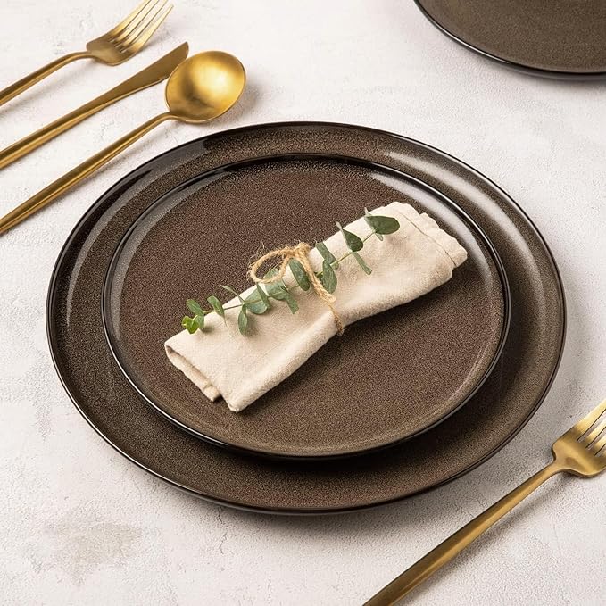 - 【UNIQUE AND SCRATCH RESISTANT】Our plates are fired with two different glazes,The reactive glaze make every plate is unique,Since our glaze is all-natural reactive finish, the surface of plates would change color on lighting,So Our glaze is also extra strong to prevent scratches from your knives and forks.