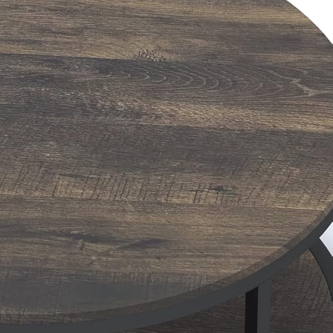 - [Round Classical vintage Coffee Table] High quality imitation wood grain finish that enhances the natural beauty of the table. Simple construction to create an attractive look and feeling. Fits well with your personal taste and interior decor. It can match with any style of living room, no matter your living room has a simple decoration or luxury style.