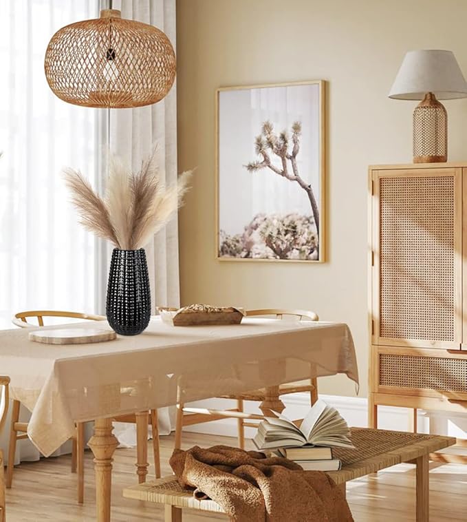 Black Ceramic Vases for Flowers, Boho Flower Vase for Home Decor, Farmhouse Distressed Decorative Vases for Pampas Grass, Mantel, Shelf, Living Room, Table Decoration