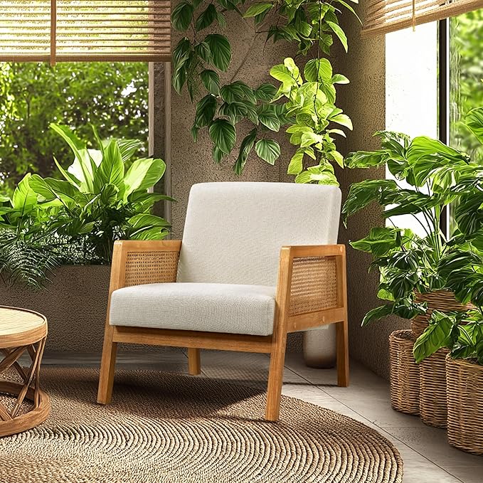 - Cane Paneled Armrests: What makes this accent chair unique is that we adopt handcrafted cane webbing to form beautiful woven arms. It is 100% natural and safe for your health. The natural hue and stylish texture add warmth and openness to your home or office