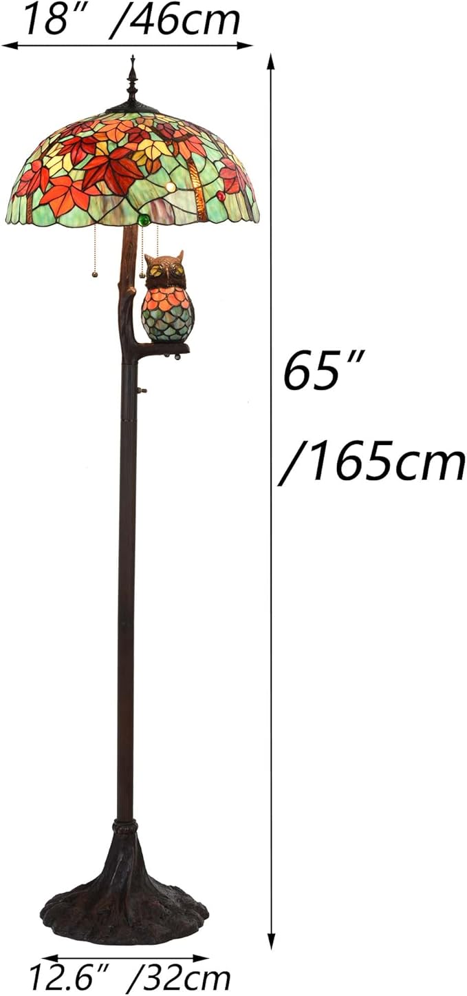 Bieye L10841 Maple Tree Leaves Tiffany Style Stained Glass Floor Lamp with 18 inches Wide Lampshade, Owl Side Lamp, 4-Light, 65 inches Tall
