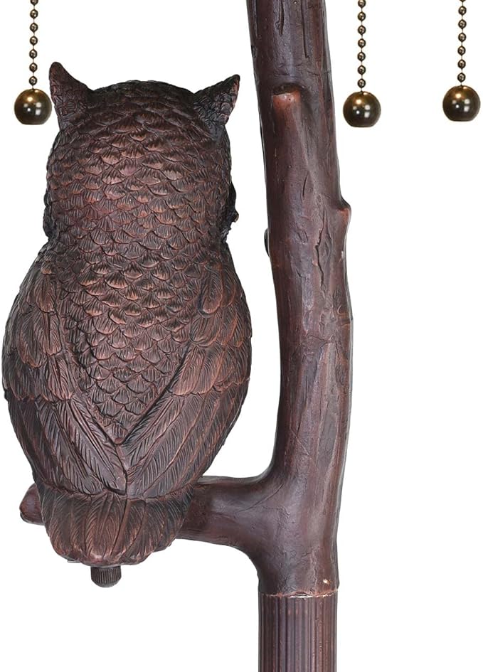 - SIZE: 18-inches wide lampshade, 65-inches Tall, 3 x E26 bulb (not included)+ 1 x E12 bulb(included), there are 3 x pull-chain switches to control the bulbs under the shade, 1 x 4-position rotary switch (turns clockwise) to control the owl and bulbs on and off separately, and 1 x foot switch to control all the bulbs on and off., we are using a warm white light bulb for taking the photo. You can try the bulbs with different color temperatures to get different light effects.