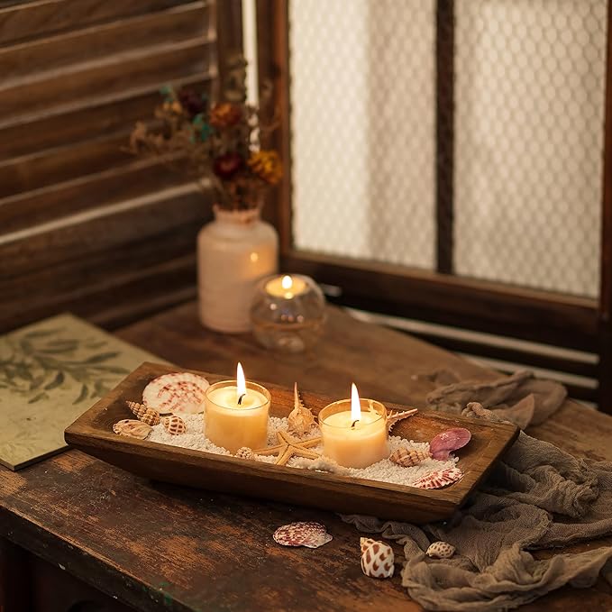 - Size: 14x6.14x1.96",Handmade with care, our decorative wooden bowls may have minor size variations of +/- 0.5 inch. These shallow bowls are crafted exclusively for decoration, not for food use, but they serve as charming table centerpieces, perfect for candleholders.