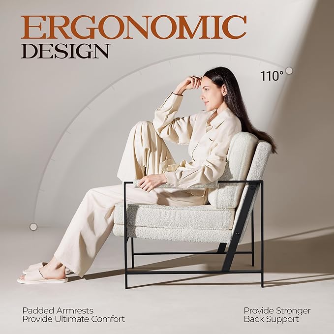 Yaheetech Teddy Boucle Fabric Armchair, Retro Leisure Accent Chair with Extra Soft Padded and Cushion, Modern Reading Arm Chair with Black Metal Frame for Living Room/Office/Bedroom/Study, Ivory, 2PC