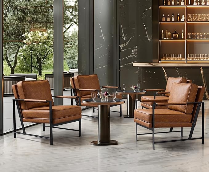 - Faux Leather-padded Armrest & Loose Back Pillow: Our faux leather accent chair is carefully crafted in many details. The metal armrest is finished with padded leather for resting your arms comfortably and adding more aesthetic details. A loose back pillow allows better airflow, you won’t feel sweated after a long time sitting