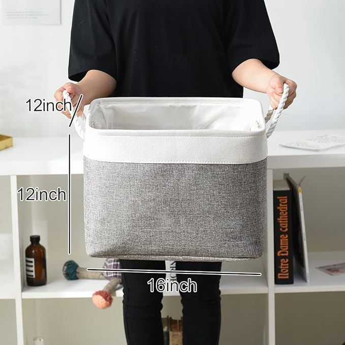 TcaFmac Organization and Storage Basket for Organizing - 16x12x12 inch Large 2 Pack Collapsible Storage Bins for Shelves, Fabric Storage Cubes for Box Closet Cloth Toy Books Kids (White & Grey)