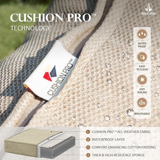 - 【E-COATING & POWDER-COATING TECHNIQUE】ALL the HERA'S HOUSE metal frame of conversation sets are processed by high-performance E-COATING and POWDER-COATING technique which provides extended protection against rust, scratches, rain, and UV harm. All weather resistant, anti-rust, easy to clean, no special care needed.