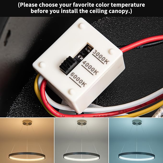 - IMPORTANT NOTED —— Please choose your favorite color temperature ( CCT 3000K warm white / 4000K nature white / 6000K cool white) before the installation. This modern Led chandelier only accepts regular on/off switches and dimmable switches, NOT compatible with any remote control.