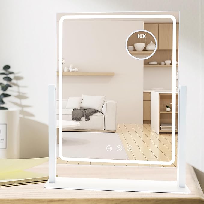 - Tru-Glow Lighting System Engineered with CRI 95 color accuracy technology, this illuminated vanity mirror replicates natural sunlight's full spectrum.Cycle through Soft White, Neutral White, or Natural Daylight modes via touch controls to ensure makeup perfection in any setting - from golden hour outdoor events to studio photography sessions.