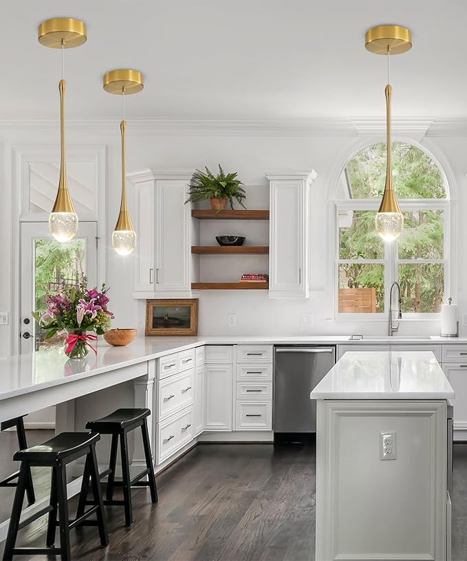 Modern Pendant Lights for Kitchen lsland LED Dimmable Raindrop Chandelier Crystal Ceiling Pendant Lighting for Dining Room Hallway Bar Living Room (1 Pack)