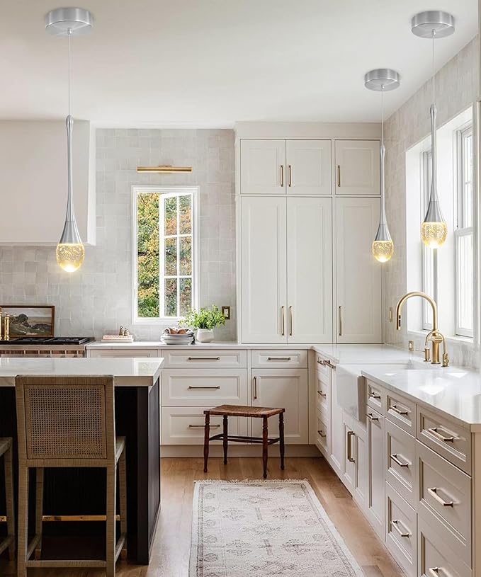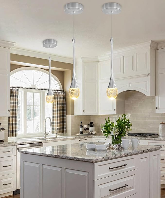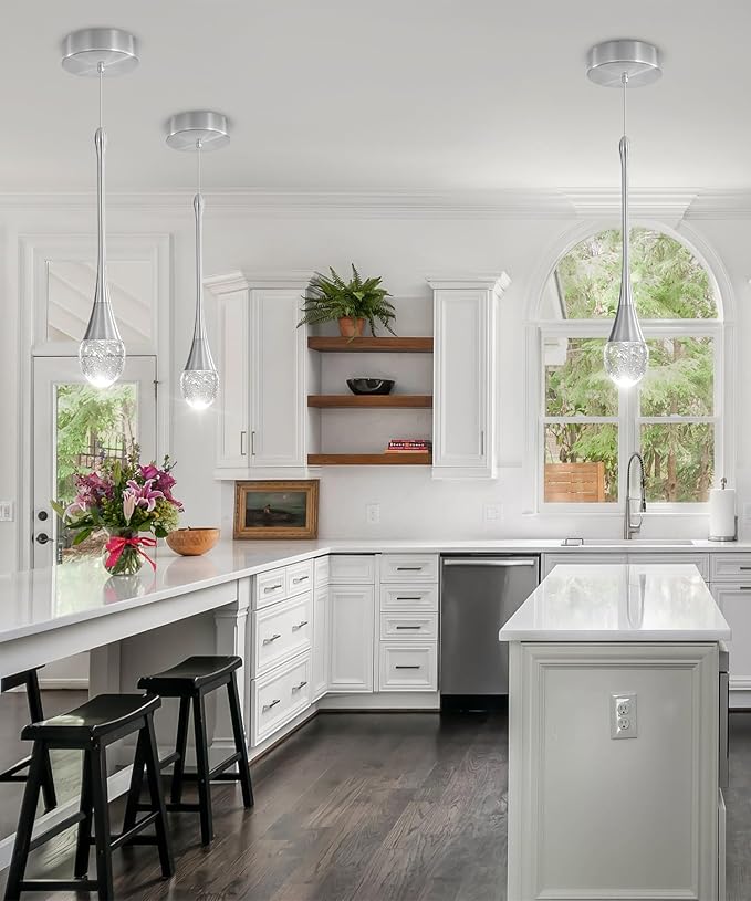 Modern Pendant Lights for Kitchen Island Silver Raindrop Crystal Hanging Light Fxitures Mini Pendant Light Fixture for Dining Room Bar Bedroom (3pack)