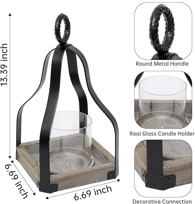 SwallowLiving 13" Rustic Farmhouse Wood and Metal Candle Candlestick Lantern Patio, Table Centerpiece