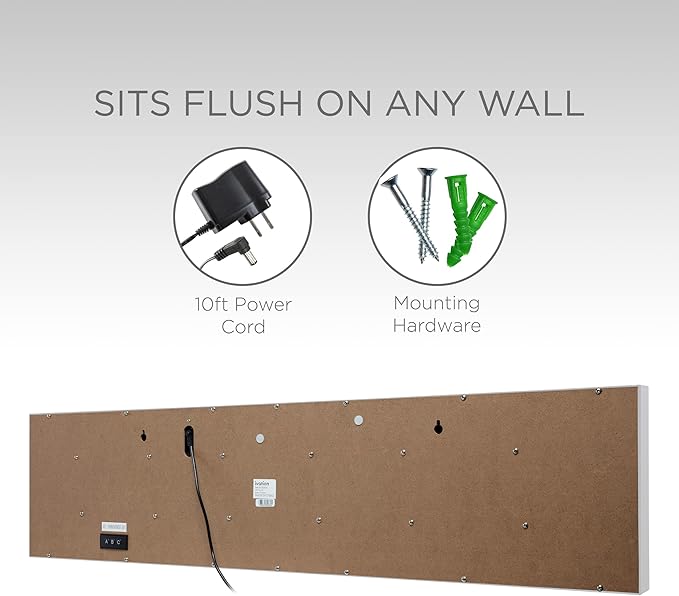 - GIANT 4-FOOT STYLISH DIGITAL CLOCK – Supersized timekeeper with AM/PM indicator, jumbo 7” digits, and 6 brightness levels for maximum visibility; powered by a 10-ft AC adapter. Sleek 48” frame with slim silhouette, chic white border, and vibrant LED display that complements any décor.