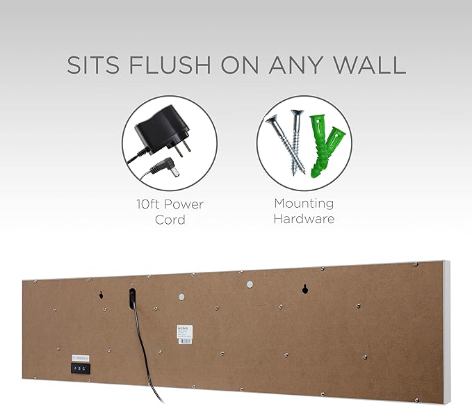 - GIANT 6-FOOT STYLISH DIGITAL CLOCK – Supersized timekeeper with AM/PM indicator, jumbo 11” digits, and 6 brightness levels for maximum visibility; powered by a 10-ft AC adapter. Sleek 72” frame with slim silhouette, chic white border, and vibrant LED display that complements any décor.