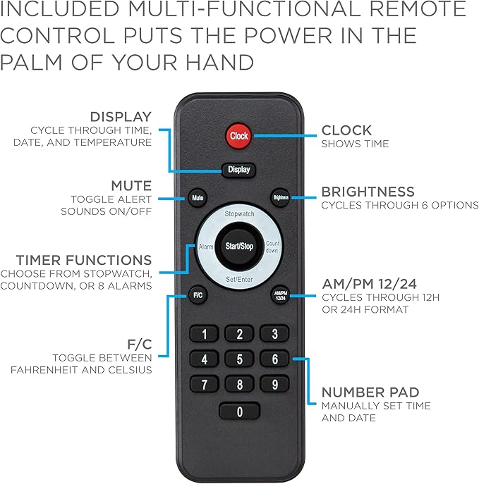 - 8 ALARM OPTIONS – Choose from 8 unique alarm and timer settings; perfect for morning alarms, reminders, or daily routines. Easily set or adjust with the included remote control.