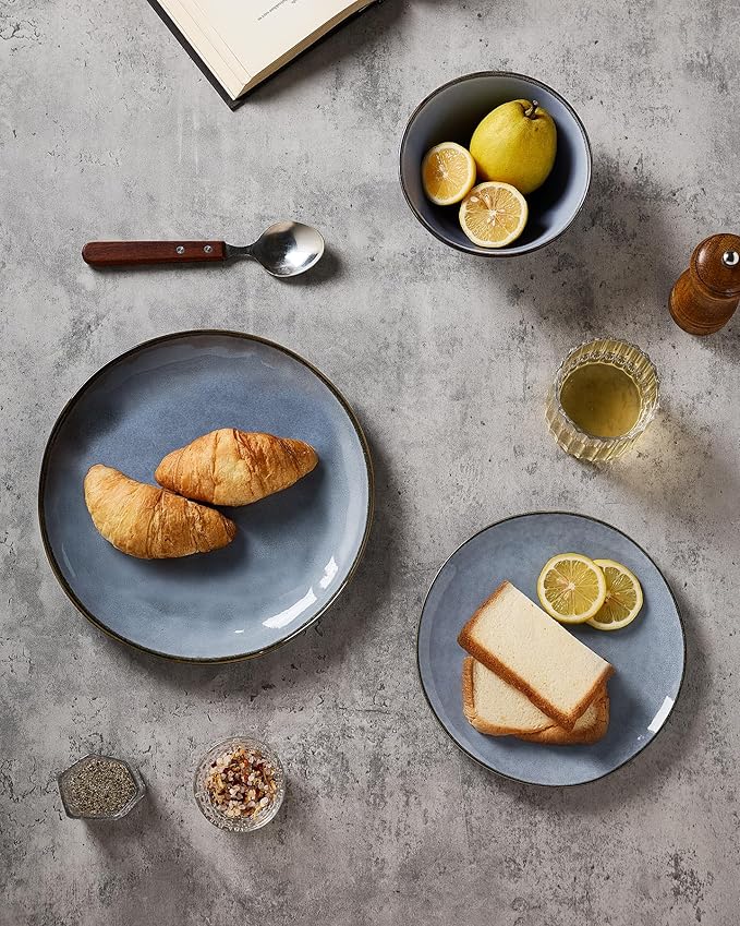 - 【Double Reactive Glaze】Double reactive glaze are combined through firing at high temperatures to create a special and fantastic glaze color. The color of the same set of tableware may have some differences, so that each plate and bowl is unique. This glaze also tends to show different colors depending on the light. The color may be a little different from what you see on the screen