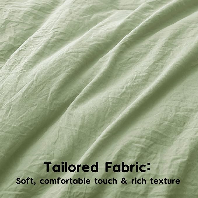 Bonlino Bedding Comforter Set King - 3 Pieces Farmhouse Comforter Ruffle Boho Bed Comforter, Fluffy Soft Lightweight Bedding Chic Rustic Country Style for Home Bedroom Dorm (King, Sage Green)